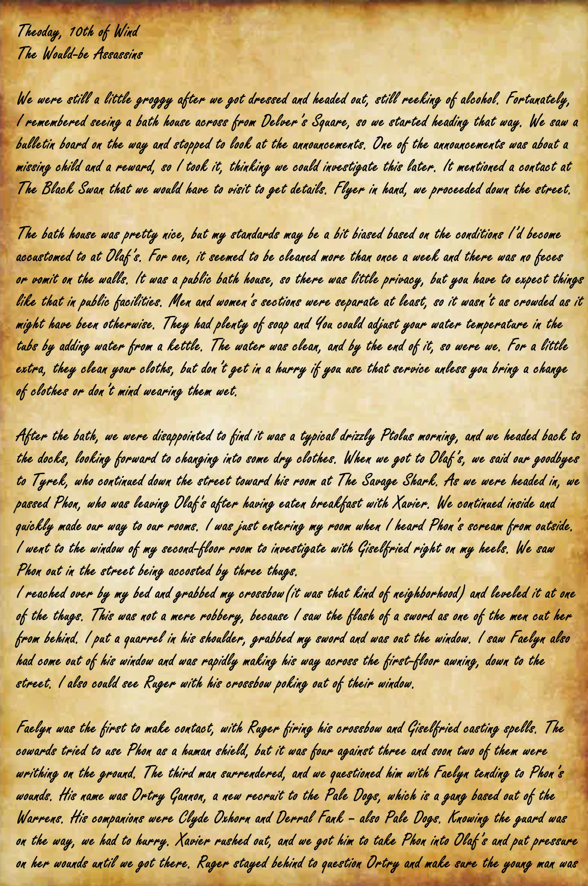 II. The Would-Be Assassins Apr 5 Written By Nick Palmer Follow along and listen to the journal of Jack the Anvil! Nick Palmer